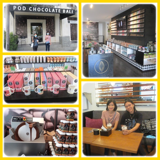 POD Chocolate Cafe ini ada di Jl. By Pass Ngurah Rai Sanur. Sekitar 5-10 menit naik mobil dari pantai Sanur. POD adalah merk lokal Bali yang memiliki pabrik coklat sendiri. Mereka klaim coklat mereka plant based, tidak mengandung dairy/milk. Jadi memang beda di rasa coklatnya.