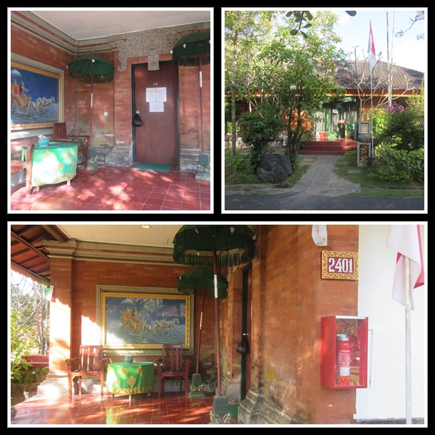 Tanpa kami sadari di awal, ternyata di belakang kamar kami, ada kamar no 2401 dengan eksterior yang cukup nyentrik. Terpampang lukisan besar di terasnya. Ada yang tau ? Yup, ternyata ini adalah kamarnya kanjeng Ratu Nyi Roro Kidul. Makanya ada lukisan beliau di terasnya. Ada payung umbul2 depan pintu dan plastik yang digantung di pegangan pintunya, mungkin isi sesajen ya. Bagi yang mau sembahyang, saat ini harus menginap di hotel Inna, baru boleh masuk ke sana. Sudah tidak dibuka lagi untuk umum.