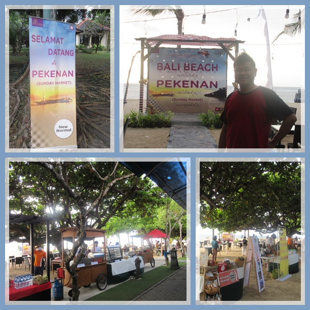 Pada hari Minggu, di area pantai hotel diadakan acara PEKENAN (Sunday Market). Ini seperti pasar kaget yang berisi orang2 berjualan macam2 di sepanjang pantai. Bagus juga untuk menggiatkan UMKM di Bali ya. Ada yang jual makanan berat, snack, minuman, baju, topi, segala ada deh. Bahkan resto hotel juga buka stand di sini dengan menjual berbagai makanan dengan harga murah.