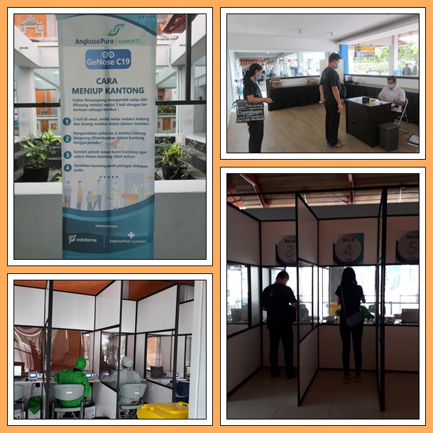 Kami melakukan tes GeNose di Bandara Ngurah Rai, 4,5 jam sebelum keberangkatan pesawat. Sebetulnya bisa dilakukan 1×24 jam sebelum keberangkatan. Tapi karena kepraktisan, maklum kami terakhir itu stay di Ubud dan jauh untuk ke bandara, maka kami lakukan beberapa jam sebelumnya. Syaratnya adalah tidak boleh makan, minum maupun merokok dalam waktu 30 menit sebelum pemeriksaan. Daftar dengan menunjukkan tiket pesawat, lalu akan diajarkan cara melakukan tes GeNose, mulai dari membuka kantong, cara meniupnya sampai cara menutup kantong.