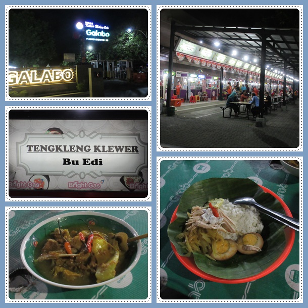 Saatnya berpikir mau makan malam apa. Beruntungnya, hotel kami menginap ini, sangat dekat dengan Galabo Solo, salah satu pusat kuliner malam terkenal di Solo. Cukup jalan kaki sekitar 100 meter atau jalan santai 5 menit. Lokasinya di halaman selatan Benteng Vredeburg. Galabo itu singkatan dari Gladag Langen Bongan, artinya pusat jajan yang terletak di Gladag. Dulu katanya ada sekitar 75 pedagang kuliner, tetapi setelah diseleksi tersisa 28 yang terpilih, beberapa di antaranya adalah legenda kuliner Solo. Mantap nih. Jam bukanya dari jam 5 sore hingga jam 5 dini hari keesokan harinya.