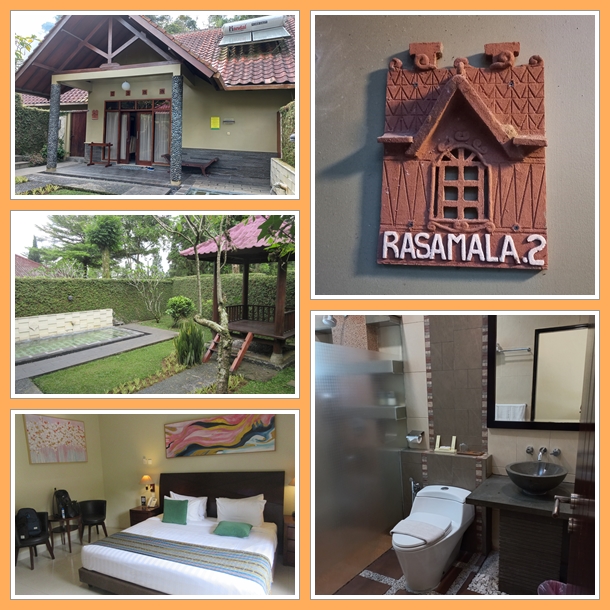 Selesai check in, kami masuk villa kami di Rasamala 2 dengan private pool hot spring dan gazebo di depan villa. Lokasi villa ini dekat dari Kawah Ratu pools, hot spring utama yang terbuka untuk umum. Jadi untuk yang ga bawa kendaraan pribadi seperti kami, lokasi ini sangat strategis. Dekat untuk jalan kaki santai ke resepsionis, restoran (tempat breakfast) dan juga pool umum. Waktu tahun 2004, kami menginap di Puspa 3. Area puspa dan semua bungalow lainnya beda jauh, itu lebih dekat ke curug Nyi Mas Nyai dan ujung ke ujung dari tempat kami sekarang menginap.