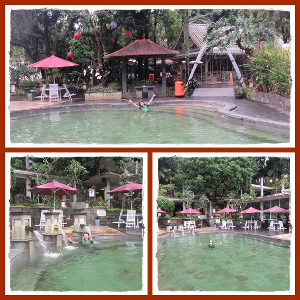 Mumpung cuaca cerah, kami puas2in deh ke Kawah Ratu lagi nih. Sekarang jam 11 siang dan walau ada beberapa pengunjung, tapi ternyata ga ada yang berenang nih. Jadi kembali menikmati private big pool, haha.. Bener2 puas deh ! Cuma memang enakan pas tadi pagi, karena cuaca dingin. Kalo sudah siang, ada panas sinar matahari dan berendam di air panas, jadi kepanasan deh.