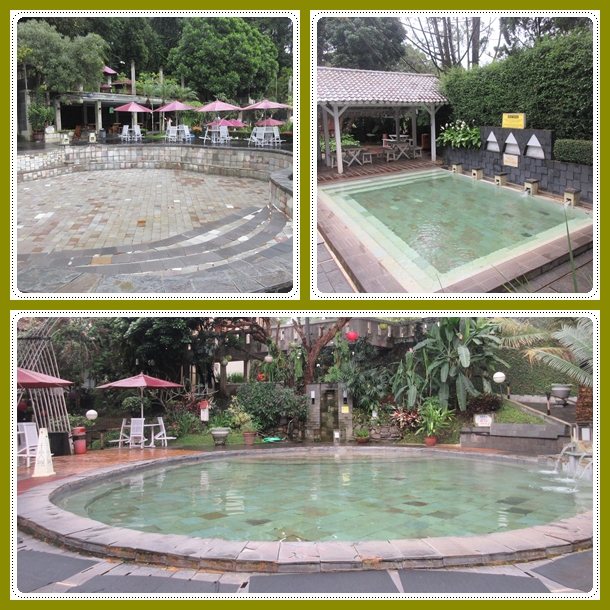 Jam 7 pagi adalah jam buka Kawah Ratu. Jadi kami mau langsung rendaman dulu di Kawah Ratu dengan harapan pagi2 masih kosong harusnya, apalagi Senin pagi kan ini. Beneran dong, hanya kita berdua yang rendaman. Asyiiiik…. Enak banget. Bisa berenang sepuasnya di kolam panas sebesar ini serasa private pool. Apalagi cuacanya dingin banget pagi ini, setelah hujan semalaman. Cocok ! Ada 1 pool dewasa yang sedang dikuras airnya sehingga kosong untuk perbaikan keramik pool yang lepas. Nah, enaknya karena ada banyak pool, jadi kalo 1 pool dikuras yang satu masih bisa digunakan. Ini bagus, menghindari kekecewaan tamu ga bisa berenang karena pool dikuras. Misalnya saat kami ke Ciwidey itu, swimming pool air panasnya kosong sedang dikuras, jadinya tidak bisa dipakai tamu. Bete kan kalo seperti itu.