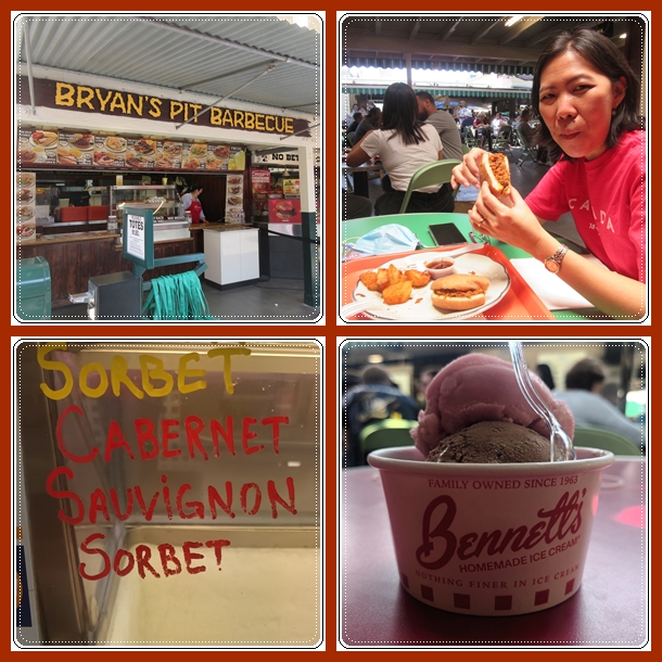 Selain itu karena siang ini panas terik, kami juga beli es krim nih. Ada yang menarik, Bennett’s Home Made Ice Cream menjual rasa2 unik yang mengandung alkohol. Jadilah kami pilih rasa cabernet sauvignon sorbet dan chocolate junkies. Harganya USD.8. Enak dan segar !