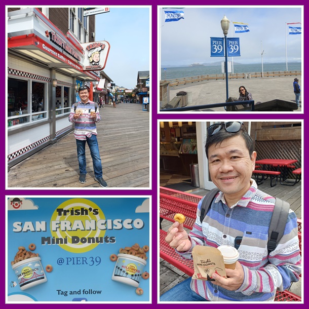 Di belakang tempat lihat Sea Lion, ada barisan toko dan tempat makan, juga tempat bermain. Buat snack, kami beli donut mini isi 6 seharga USD.5 dan segelas hot chocolate seharga USD.4. Enak nih !