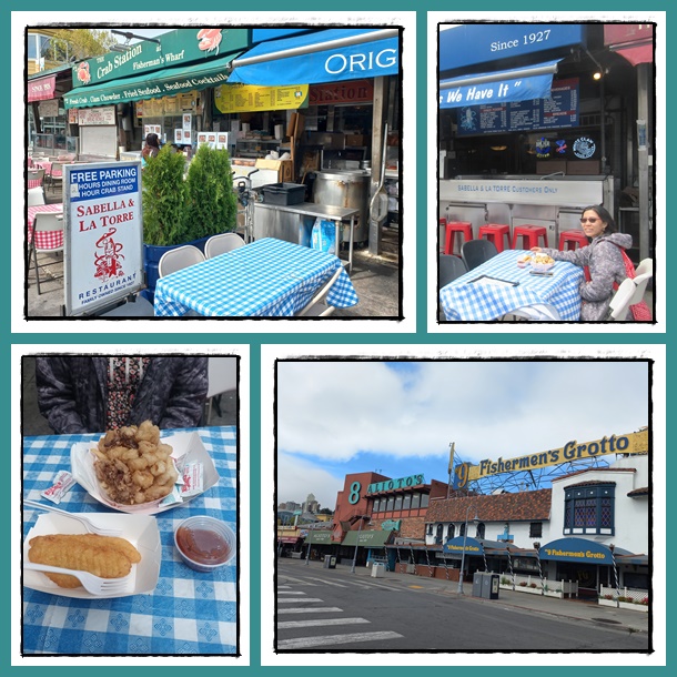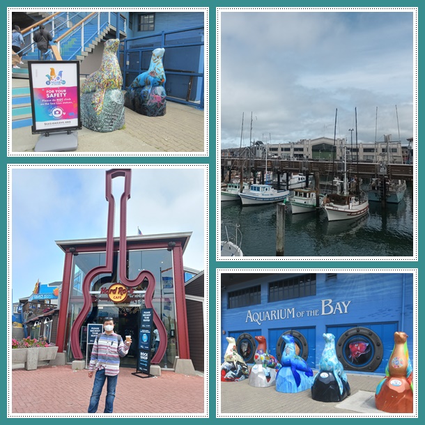 Saat kami tiba, suasana di Fisherman’s Wharf sangat sepi. Banyak toko tutup. Malah banyak restaurant legendaris yang besar2 tutup permanen gara2 pandemi covid. Kemarin pas kami lewat naik mobil (hari Minggu), sepertinya cukup ramai orang yang duduk2 makan dan lalu lalang. Mungkin karena ini masih pagi ya. Coba nanti kita lihat siangan bagaimana.
