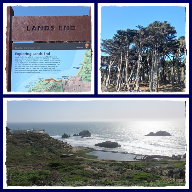 Kami pergi ke Lands End. Jadi diterjemahkan ya tempat dimana daratan itu habis, berganti dengan laut. It’s beautiful view ! Ada reruntuhan dari bangunan Sutro Bath, pemandian yang terletak di pinggir laut. Sekarang tinggal seperti swimming pool pinggir laut. Bisa juga sebetulnya kalo kita mau main ke pantai, cuma karena angin dingin dan matahari terik sore ini, kami ga berminat ke pantai deh.