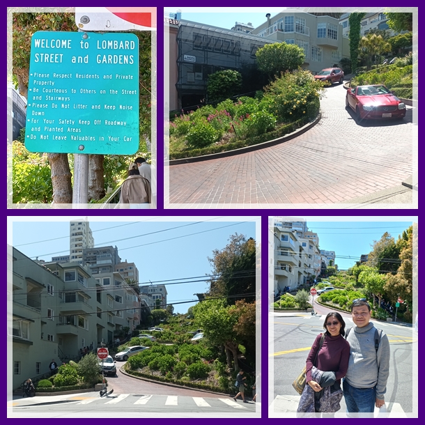 Selain Chinatown, di SF juga ada Little Italy, jadi banyak restaurant Italia di sini. Kami sempat melewati area ini juga. Setelah itu barulah kita jalan2 naik mobil. Yang pertama2 kita lalui adalah Lombard Street, salah satu jalan paling terkenal di dunia karena keunikannya. Thanks banget karena Sutan mau nyetir melewati Lombard Street ini, jadi kami bisa merasakan jalan yang meliuk2 turun ini. Di kanan kiri jalan sebenarnya rumah penduduk setempat, kebayang ya mereka kalo mau masuk-keluar rumahnya repot bener, rem musti pakem ini, haha..