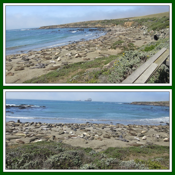 Ini sih luar biasa banget ! Sangat bersyukur bisa berhenti di tempat ini tanpa kami tau sebelumnya bakal ada spot ini. Betul2 kejutan yang sangat menyenangkan. Kami stop di sini cukup lama, liatin tingkah mereka yang lucu, betah banget. Ini posisi kita dan seal sangat dekat, jauh lebih dekat daripada waktu di Pier 39 San Francisco, seal nya juga ini ukuran raksasa (makanya namanya gajah ya) dan jumlahnya ga kira2 banyaknya. Ini sih pantai milik mereka deh.
