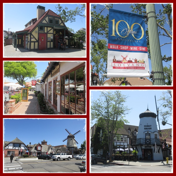 Akhirnya sampai di Solvang, kota di California yang bergaya arsitektur Denmark. Walaupun mayoritas arsitekturnya Denmark, ada juga kincir angin seperti di Belanda. Ya, gaya Eropa lah bisa dibilang. Saat kami datang, sedang ada market di tengah2 jalan yang menjual aneka buah dan sayuran yang segar2. Banyak toko di pinggir jalan yang menjual barang2 khas Eropa. Banyak juga restoran2 berjejer di sini.