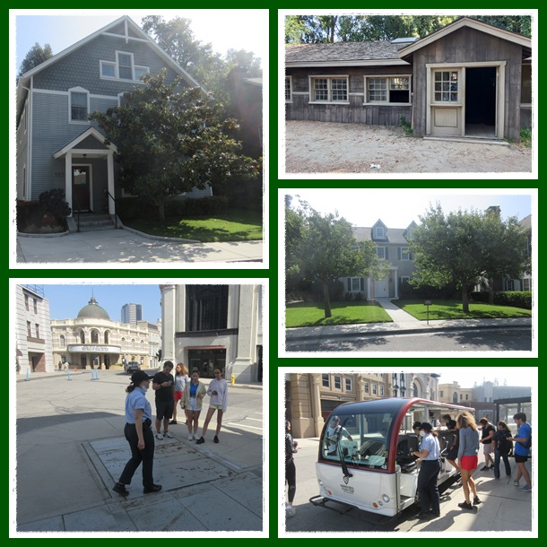 Selesai nonton film, kami naik mobil open air yang menyerupai golf car, mengelilingi kompleks Warner Bros Studio. Ini dipandu oleh driver yang merangkap sebagai tour leader. Kami diajak keliling untuk lihat stage berupa deretan perumahan, kota, hutan, dll yang menjadi lokasi shooting. Ada juga tempat dimana kami turun dan bisa masuk ke dalam gedung nya untuk memahami proses shooting film.