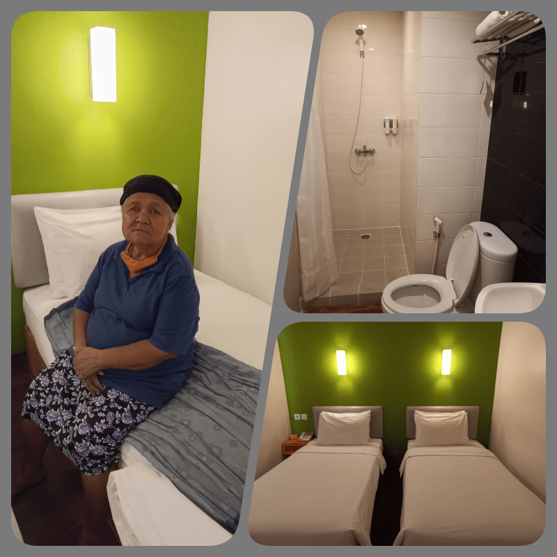 Acara selanjutnya adalah memboyong Bu Katinem ke hotel tempat Diana menginap. Iya, Diana menginap 2 malam di Hotel Amaris Ponorogo. Karena Diana pergi sendirian, maka ada jatah untuk 1 orang lagi di kamar. Pas deh, sekalian bisa ngobrol lebih banyak dengan Bu Katinem. Jeff kali ini memang tidak ikut, karena tidak bisa meninggalkan pekerjaannya.