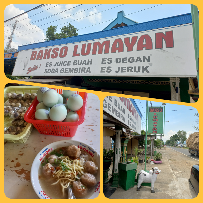 Setelah melihat bendungan yang luas ini, kami mampir makan siang di Bakso Lumayan. Semangkok isi 6 bakso, terdiri dari bakso polos, bakso isi daging cincang dan bakso isi telur puyuh. Pakai mie kuning dan bihun. Harganya 8 ribu rupiah saja. Rasanya enak ! Yang menarik adalah tambahan yang disediakan di meja. Selain telur puyuh matang dan tahu goreng, ada telur asin matang juga. Jadi rupanya cara orang Ponorogo makan : telur asin nya dikorek trus dimasukin ke mangkok bakso nya. Waduh, ga pernah kebayang tuh makan bakso berkuah pake telur asin ? Oke deh… kearifan lokal ini, haha.. Selama ini Diana cuma pernahnya makan rawon pakai telur asin.
