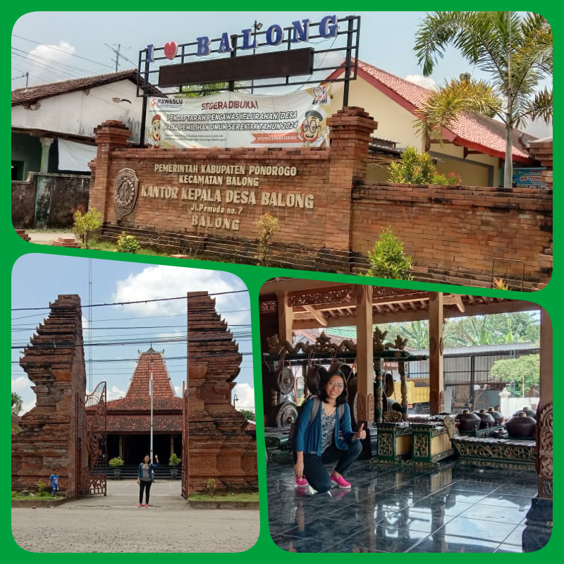 Sempat mampir dulu sebentar ke Kantor Kepala Desa Balong, ga jauh dari rumah Bu Katinem. Ada gapuranya kayak di Bali, lalu di dalamnya ada aula penuh unsur kayu. Luas dan bagus ya, ada gamelan nya juga. Cocok buat tempat kumpul atau kegiatan warga desa dalam jumlah banyak.