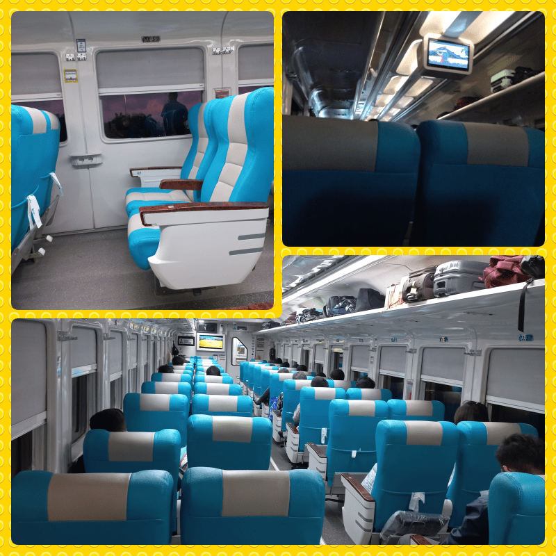 Tiket kereta dibeli secara online melalui traveloka dengan harga Rp.575.000,- untuk 1 way jika dibeli dari jauh-jauh hari. Makin mendekati hari H, harga tiket semakin mahal. Bisa sampai Rp.700.000,- untuk 1 way. Tempat duduk bisa langsung pilih saat pesan tiket online, mau di gerbong berapa dan di seat mana. Biasanya yang duluan terisi adalah gerbong tengah (no.4) dari ketersediaan 8 gerbong. Kalo mau agak sepi, pilih saja gerbong2 ujung.