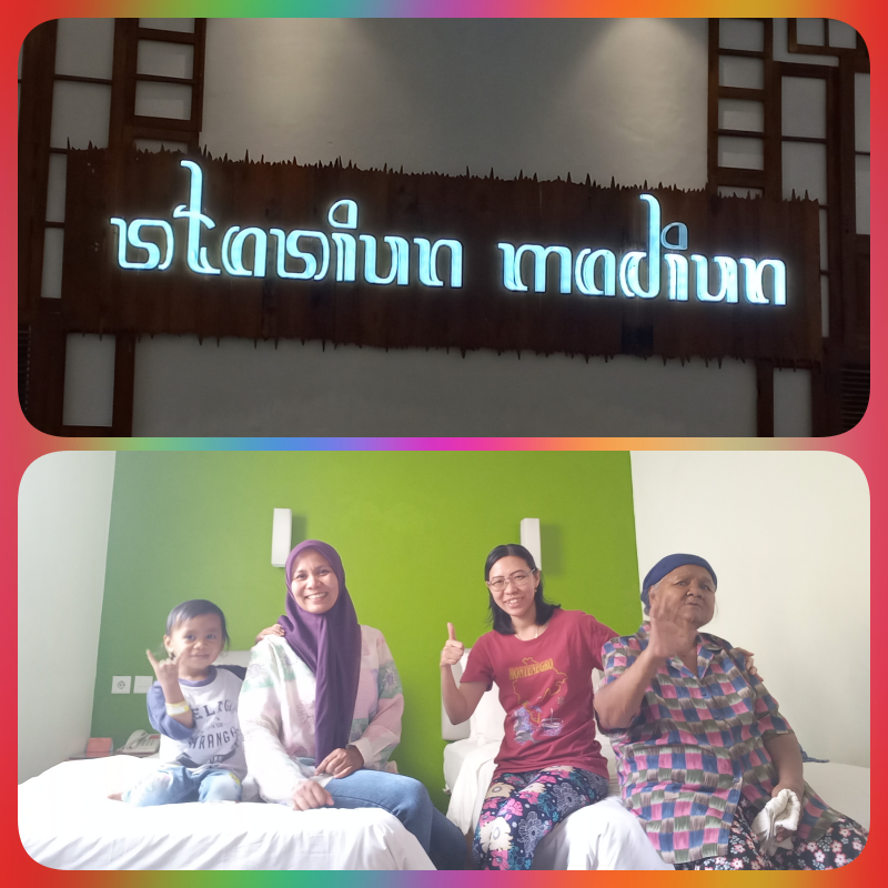 Subuh pk.03.20 kereta tiba tepat waktu di Madiun. Dari Madiun ke Ponorogo ada 2 opsi, naik mobil online (grab/gocar) atau shuttle bus DAMRI. Untuk shuttle bus adanya jam 4 pagi di stasiun Madiun dan akan tiba di Amaris Ponorogo jam 6 pagi. Perjalanan sekitar 2 jam itu karena berhenti di beberapa titik dahulu, seperti terminal. Ini opsi yang oke dan murah sih. Hanya saja karena jam 03.30 stasiun sudah sepi banget dan Diana agak pegal2 karena perjalanan di kereta, jadi akhirnya pilih gocar saja deh, biar cepat sampai hotel.
