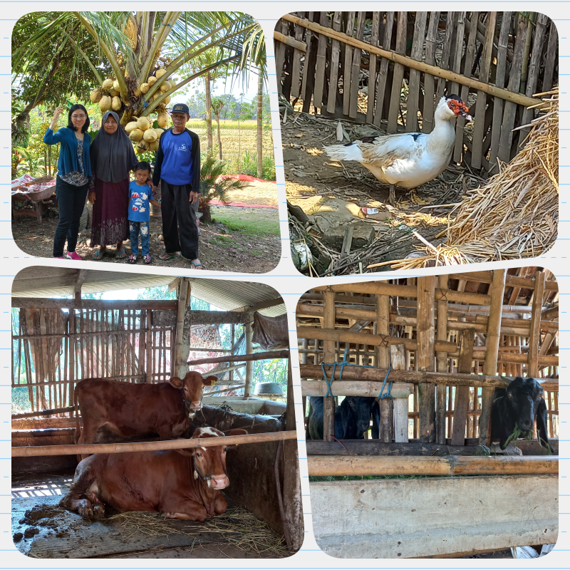 Sudah kenyang sarapan, lanjut ke rumah mbak Sri di Balong. Rumahnya bersebelahan dengan orangtua dan adiknya. Ayah dari mbak Sri ini adalah adik dari Bu Katinem, namanya Pak Kadimin. Di sini betul-betul berasa di desa ya. Ada banyak sawah, sapi, kambing, ayam, wuiiih seru juga. Di depan rumah ada kelapa kuning. Mbak Sri langsung petik dan belah untuk Diana bisa minum airnya. Fresh banget nih !