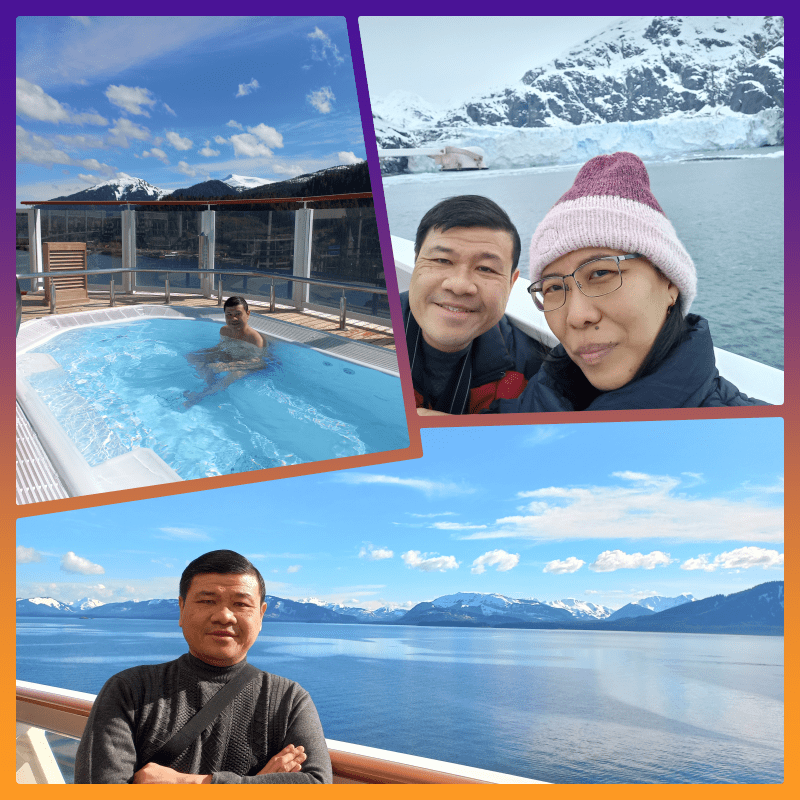 Kami sudah beberapa kali naik cruise menginap. Yang model kapal pesiar besar dan mewah pernah naik Costa Victoria (2017) 4 hari 3 malam, dari Singapore ke Malaka dan Penang. Pernah juga naik kapal di Halong Bay Vietnam (2018) 3 hari 2 malam. Kalo di Eropa, pernah naik kapal Viking Line sebagai transportasi betulan, dari Stockholm (Sweden) menuju Helsinki (Finland) tahun 2016. Semua pengalaman cruise kami menyenangkan, makanya kali ini kami mau cruise yang lebih lama, sampai seminggu, dengan rute yang kata orang2 juga indah banget, yaitu Alaska.