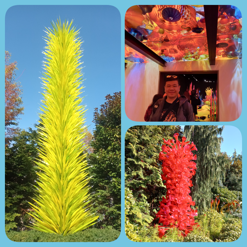 Saat membeli tiket ini, sudah jam 4 sore lebih dan penjual tiketnya menyarankan kam ke Chihuly Garden and Glass karena jam terakhir masuk adalah jam 5. Oke lah. Di sini ada banyak instalasi seni kaca, baik indoor maupun outdoor. Spektakuler banget, keren, wow banget deh. Bentuknya menarik dan permainan serta pantulan warna2nya juga fantastis. Silakan dinikmati foto2nya atau bisa langsung lihat websitenya. Kami menghabiskan waktu lebih dari 1 jam di sini. Itu pun lumayan terburu2 karena masih banyak agenda selanjutnya.