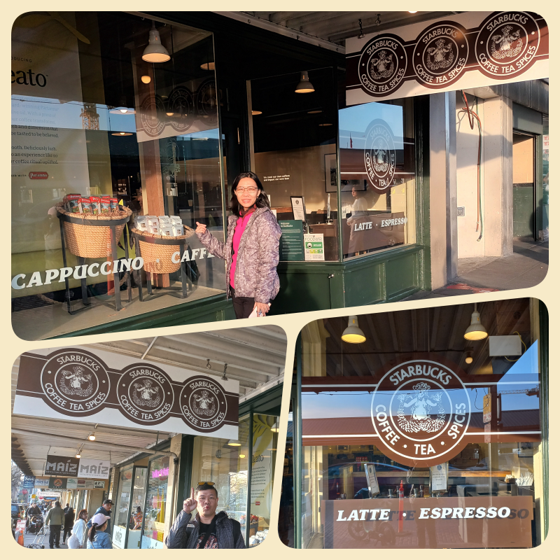 Saat kami sampai sekitar jam 7 pm lebih, ternyata sudah tutup. Dulu kabarnya store ini tutup jam 8, namun sekarang (mungkin setelah pandemi) sudah tutup jam 4 sore. Jadilah kami hanya bisa berfoto dari luar sambil berencana untuk kembali ke sini lagi setelah pulang dari Alaska cruise. Rupanya logo Starbucks nya pun awalnya berbeda dengan yang sekarang kita kenal, mermaid nya lebih vulgar, hehe.. liat saja di gambarnya ya.