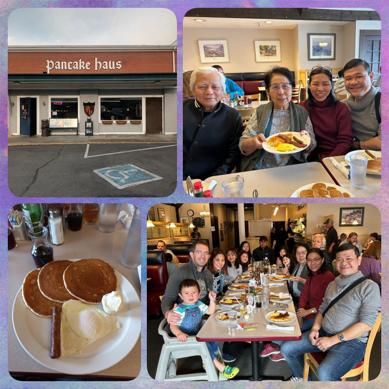 Hari ini kami akan memulai perjalanan cruise kami. Tapi sebelumnya, kami ditraktir sarapan dulu oleh om Sam dan tante Eng. Tempatnya di Pancake Haus dekat downtown. Sarapan rame2 nih sama seluruh family Diana di Seattle, total ber-13 orang, wuiiih… seru.