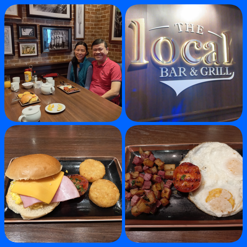 Kalo breakfast di Observatorium Lounge ini, menunya beda dengan yang ada di buffet. Kebanyakan simple, pastry dan cake gitu. Kalo juice, kopi, teh, buah2an tetap ada banyak dan melimpah. Buka dari jam 5 pagi hingga 10 malam. Nah, karena belum terlalu kenyang, jam 9 am kami lanjut makan di The Local Bar & Grill. Masih pesan menu breakfast nih, enak dan kenyang !