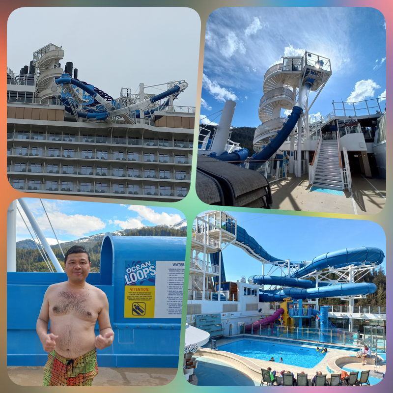 Dekat jacuzzi ada Ocean Loop, seluncuran yang jalurnya melebihi dinding cruise. Menarik juga untuk dicoba. Untuk naik ini ada syarat tinggi dan berat badan, jadi memang untuk dewasa. Buat anak-anak ada permainan air lain yang lebih tidak ekstrim. Seluruh barang seperti cincin dan jam tangan tidak boleh dipakai.