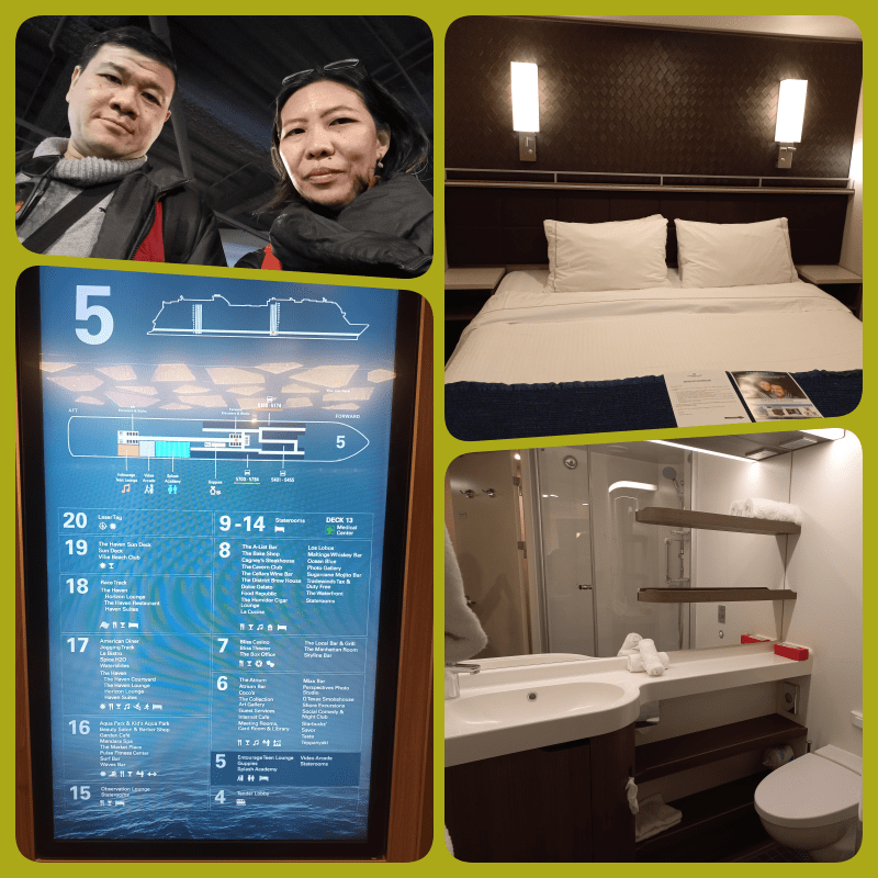 Cabin crew yang bertugas membersihkan kamar kami namanya mas Wahyu, asalnya dari Jogja-Indonesia. Wah, senang ketemu orang Indonesia nih. Dia bertanggung jawab atas 19 kamar di lantai 5 ini. Kamar kami di lantai 5 merupakan lantai terbawah untuk tamu karena di lantai 3 dan 4 merupakan kamar untuk para awak kapal. Buat kami, lokasi kamar sangat strategis. Sudah pilih dari awal booking sih memang. Lokasi lift tidak jauh dari kamar dan merupakan lantai terbawah untuk lift penumpang sehingga seringkali kami naik lift kosong dari lantai ini ke atas. Naik tangga 1 lantai, di lt 6, itu adalah lobby kapal. Di situ lah tempat customer service, starbucks, 2 restoran ala carte, cafe dan berbagai tempat hiburan lainnya. Iya, ada Starbucks di sini, berbayar ya, karena NCL bekerjasama dengan Starbucks, sehingga di semua cruise NCL ada penjualan Starbucks.