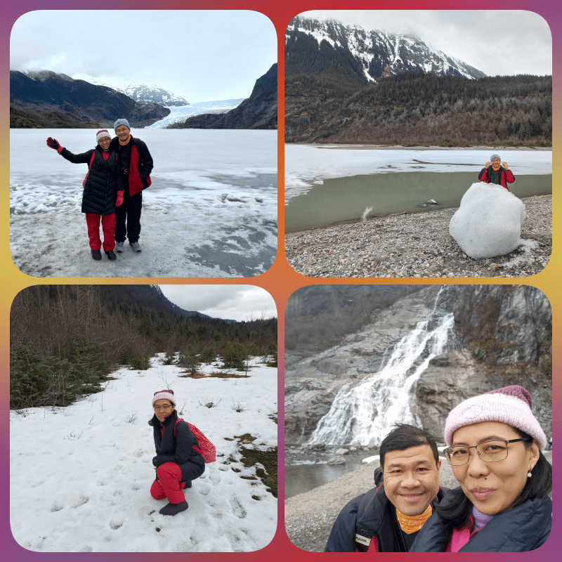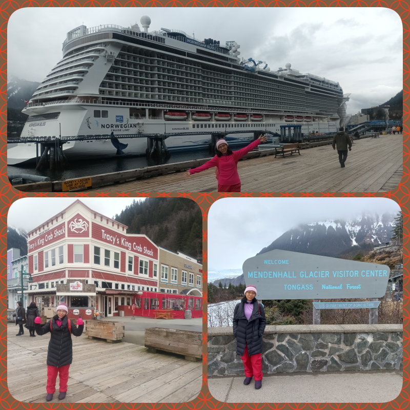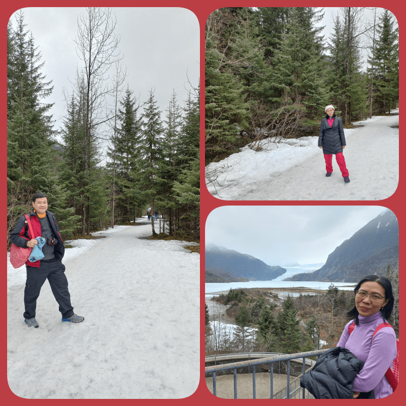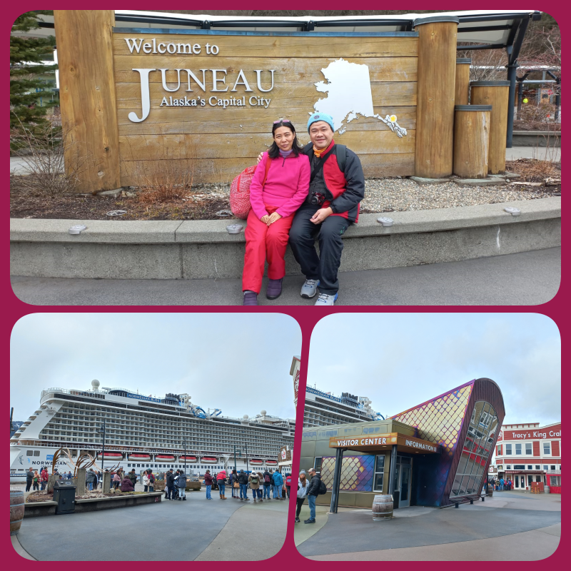 Pk.1.30 pm kami tiba di port pertama yaitu kota Juneau. Akhirnya bisa menyentuh daratan juga nih setelah sekian lama berlayar. Juneau merupakan ibu kota negara bagian Alaska, USA. Jangan bayangkan Juneau seperti kota besar dengan gedung tinggi ya. Ini Alaska, penduduknya sedikit, kotanya kecil dan dikelilingi pegunungan yang saat ini masih diliputi salju.