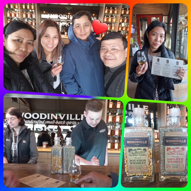 Ternyata di sebelah resto kami persis, ada tempat penyulingan whiskey yang terkenal. Namanya Woodinville Whiskey Co. Di sini juga bisa whiskey tasting ternyata. Wah menarik untuk dicoba. Kali ini yang ikutan cuma 4 orang nih. Kami dan 2 sepupu Diana. Yg lain takut mabok sepertinya, haha..
