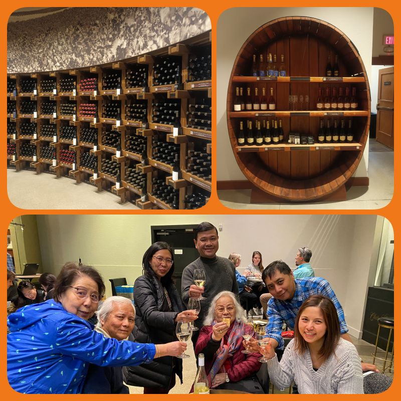 Waktu kami ke sini, perkebunan anggurnya tidak menarik karena belum musimnya. Jadi kami mau minum wine saja. Di sini ada banyak sekali jenis wine. Kita bisa ambil paket wine tasting, nanti akan disajikan beberapa jenis wine disertai cheese dll. Hanya saja butuh waktu sekitar 1 jam sendiri untuk bisa menikmati experience itu. Hm.. terlalu lama ya. Jadi kami beli saja yang gelas untuk coba rame2.