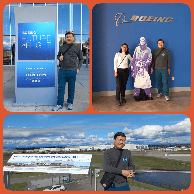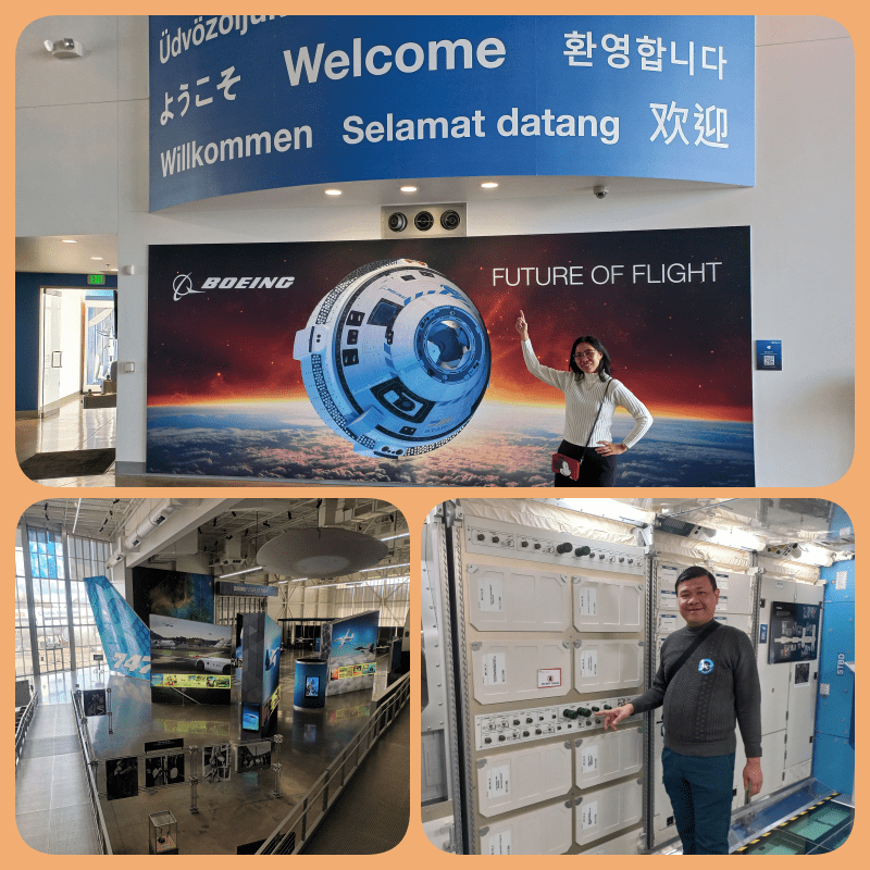 Dari outlet, kami berkunjung ke museum Boeing Future of Flight. Di seberangnya ada pabrik Boeing, tempat produksi pesawat Boeing. Di dunia ada 2 pabrikan raksasa yang memproduksi pesawat, yaitu Airbus yang berada di Toulouse, Perancis dan pesaingnya Boeing yang berlokasi di Seattle Amerika ini. Dulu sebelum pandemi covid, ada tour keliling pabrik Boeing. Seru nih. Sayangnya sejak pandemi tour ini ditiadakan, jadi kami hanya bisa berkunjung ke museum nya saja.