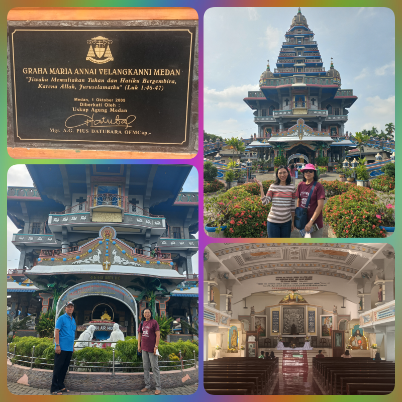 Dari sini, kami melanjutkan perjalanan ke Medan dengan jarak tempuh sekitar 2,5 jam. Mobil kami ngebut karena memang jaraknya sangat jauh. Masuk kota Medan, kami tidak langsung ke hotel melainkan ke Graha Maria Annai Velangkanni yang merupakan gereja Katolik dengan arsitektur yang sangat luar biasa indah, memadukan arsitektur Indo-Mughal.