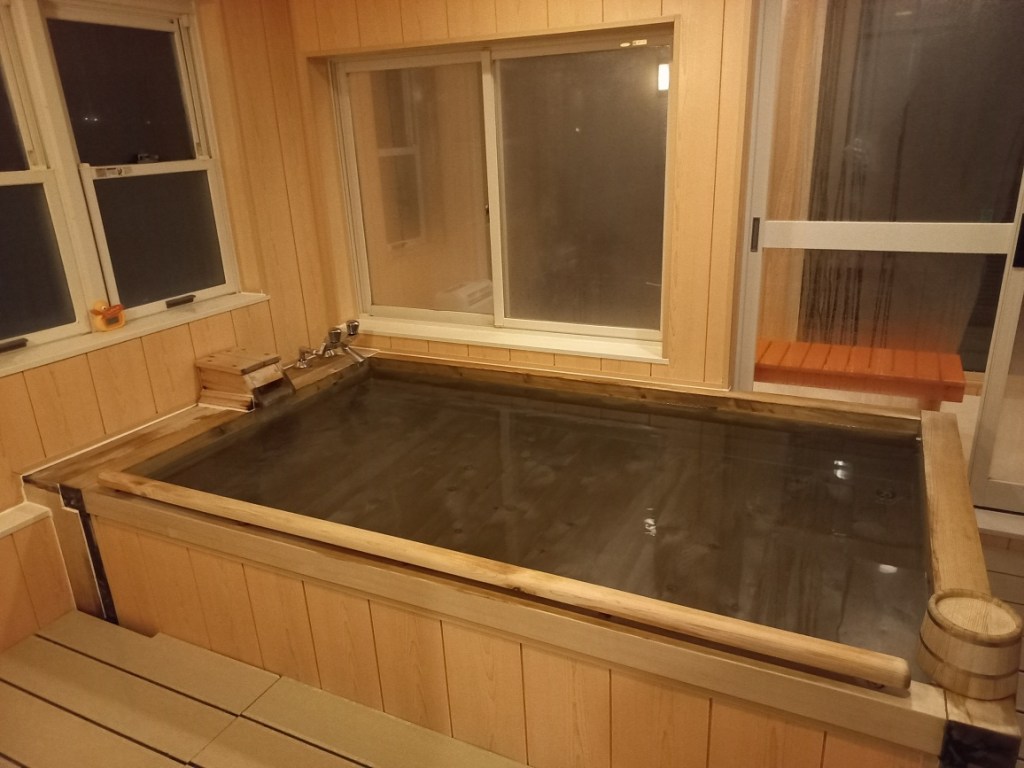 Kembali ke resort, kami langsung memanfaatkan hot tub yang ada di lantai atas. Konsepnya mirip private onsen. Jadi tamu hotel bisa booking mau pakai jam berapa. Ada beberapa slot yang ditawarkan. Sebenarnya kalo kami melakukannya di siang hari, pasti bagus sekali karena sambil berendam bisa melihat view salju dan Mt. Yotei. Sayang karena keterbatasan waktu, kami hanya bisa melakukannya saat malam hari ini. Jadilah tidak ada view, gelap semua. Ya sudahlah, enjoy onsen nya saja !