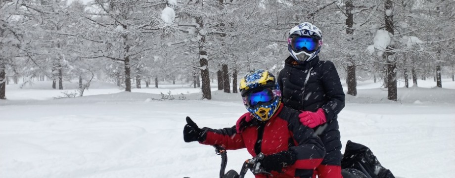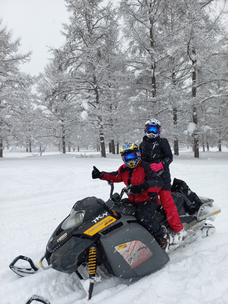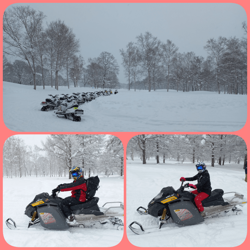 Aktivitas pertama kami adalah mengendarai snowmobile. Biayanya 26.000 Yen per kendaraan (utk 2 org tandem). Harus booking dahulu sebelumnya melalui website. Ini yang dibantu Mr.Dave karena harus masukkan nama Jepang (kanji) dan nomor telpon Jepang yang kami ga punya. Include 1 snowmobile, helm dan google (kacamata ski) untuk kami berdua. Waktunya sekitar 1 jam termasuk sekitar 15 menit briefing dan training singkat cara mengendarai snowmobile.