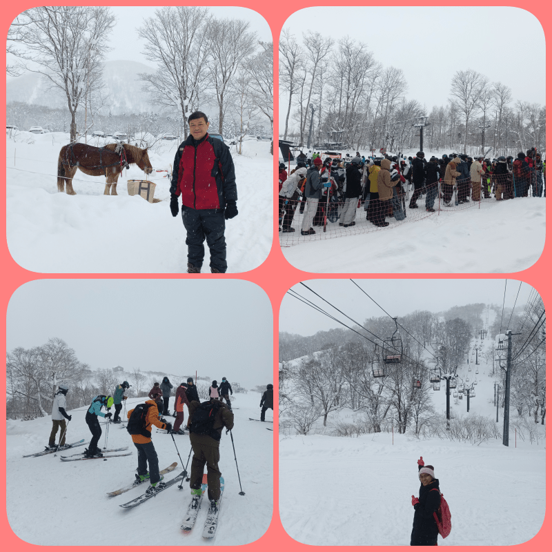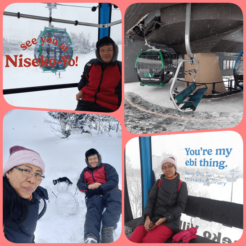 Setelah puas mengendarai snowmobile, kami beli pass 1/2 days yang berlaku hingga jam 13.00. Pass ini sebenarnya untuk naik gondola dan chair lift sebagai sarana transportasi di dalam Niseko Village ini. Harga pass nya 6.700 Yen per orang. Namun ternyata kami tidak diperbolehkan naik chair lift (terbuka) karena dikhususkan untuk mereka yang pakai sepatu ski. Jadi kami hanya bisa menaiki gondola (tertutup). Sayang banget kami baru tau hal ini setelah antri panjang dan begitu tiba giliran naik kami pun diusir. Hiks… Padahal pengen banget merasakan sensasi naik chair lift yang terbuka itu, seperti waktu kami di Swiss tahun 2012 dan di Western Canada tahun 2018
