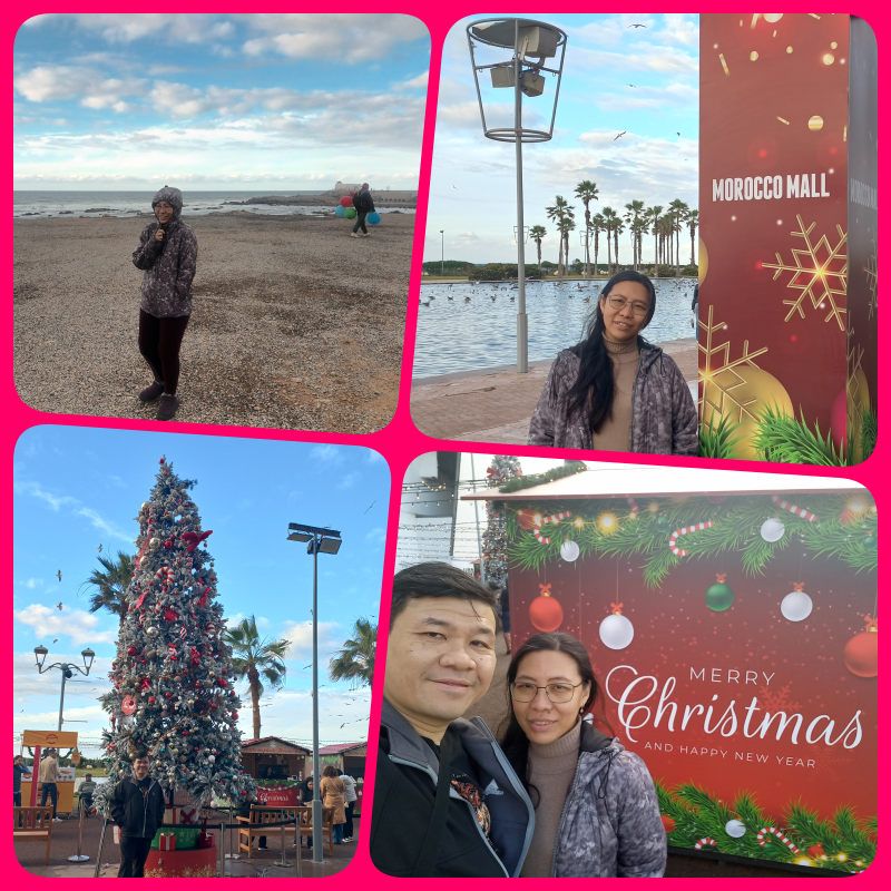 Morocco Mall menghadap samudera Atlantik. Sebelum masuk mall, kami sempat main ke pantai di sampingnya. Namun karena gerimis, dingin dan sangat berangin, kami cepat2 masuk ke dalam mall. Walaupun Morocco adalah negara dengan jumlah penduduk muslim mencapai 99%, namun dekorasi Natal ada di mana2 termasuk mall ini. Malah di setiap hotel yang kami inapi, selalu ada pohon Natal dengan ukuran beragam di dekat receptionist.