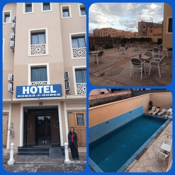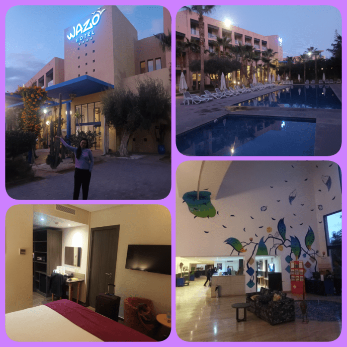 Malam ini kami menginap di Wazo Hotel. Letaknya di kota Marrakech yang lebih modern, sekitar 30 menit perjalanan mobil dari Old Medina. Hotel ini bernuansa modern. Penuh dengan turis asing, kebanyakan dari Eropa. Kita istirahat malam ini karena besok pagi kami akan jalan jauh menuju Quarzazate.