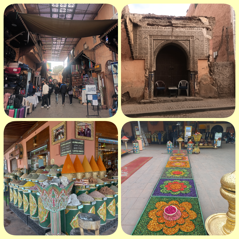 Dari Palais Sebban, kami diajak jalan2 di dalam Old Medina yang merupakan pasar terbesar di Marrakech. Tanpa lokal guide, dijamin tersesat karena banyak sekali jalan2 kecil di dalamnya. Di kanan kiri banyak toko yang terbagi sesuai dengan barang yang dijual seperti spice, kerajinan kulit, makanan dan lain2. Kami sempat diajak masuk ke dalam beberapa toko oleh lokal guide kami dan diperkenalkan kepada pemilik tokonya. Nanti mereka akan mempromosikan barang2 khas Morocco yang dijual di sana. Tidak ada paksaan dari para penjual untuk membeli barang mereka. Mereka tetap ramah dan bersahabat kepada kami apalagi setelah tahu bahwa kami dari Indonesia.