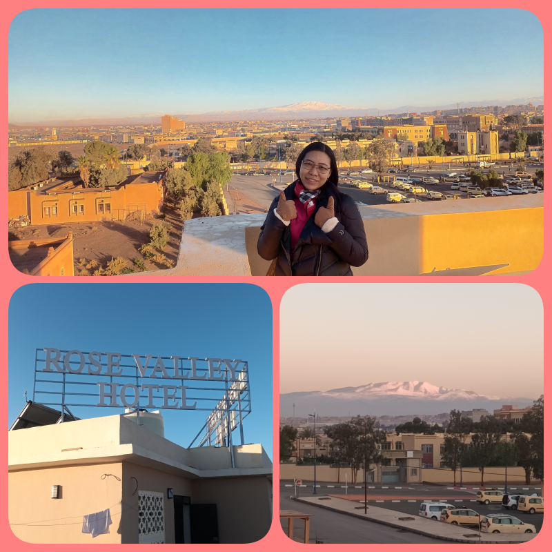 Rose Valley Hotel ini memiliki balkon di atapnya dengan pemandangan bisa melihat Atlas Mountains yang indah di kejauhan seperti gambar di atas. Oke.. saatnya melanjutkan perjalanan menuju gurun pasir sahara yang terkenal itu. Waaah… bakal seru nih, kemain salju, sekarang mau ke gurun pasir. Kira2 bakal panas apa dingin ya gurunnya ? Nantikan cerita selanjutnya ya.