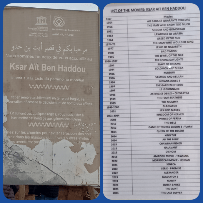 Ternyata sejak tahun 1954, Ait Ben Haddou ini sudah dijadikan lokasi syuting film2 terkenal seperti tabel di atas, Ayo siapa yang pernah nonton salah satu judul film di atas, pastinya bisa melihat Ait Ben Haddou di film tersebut.