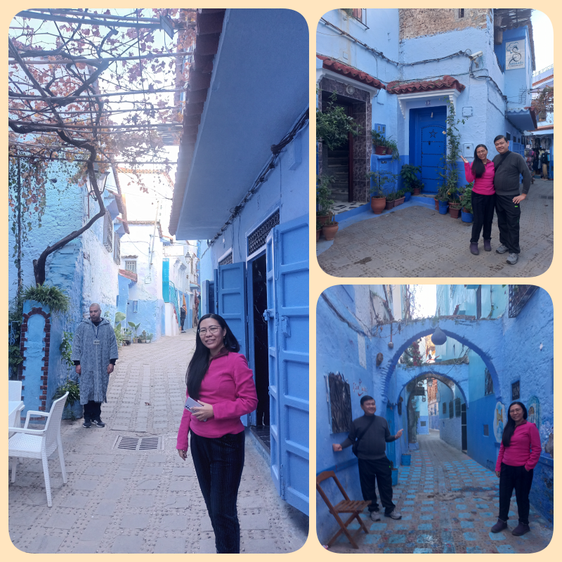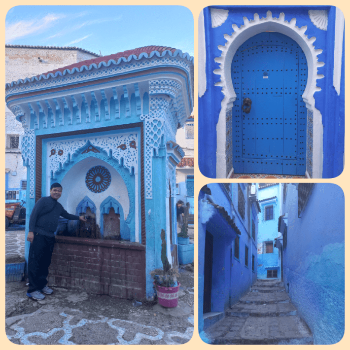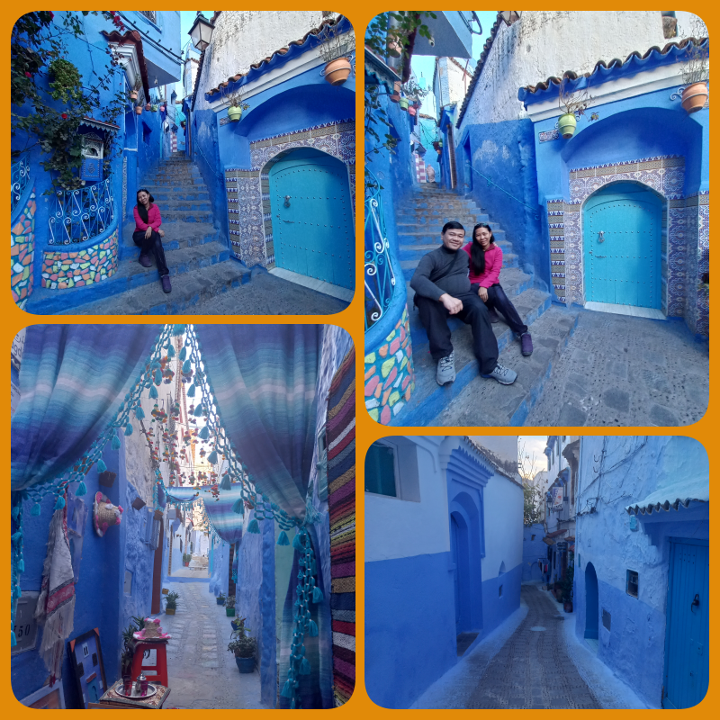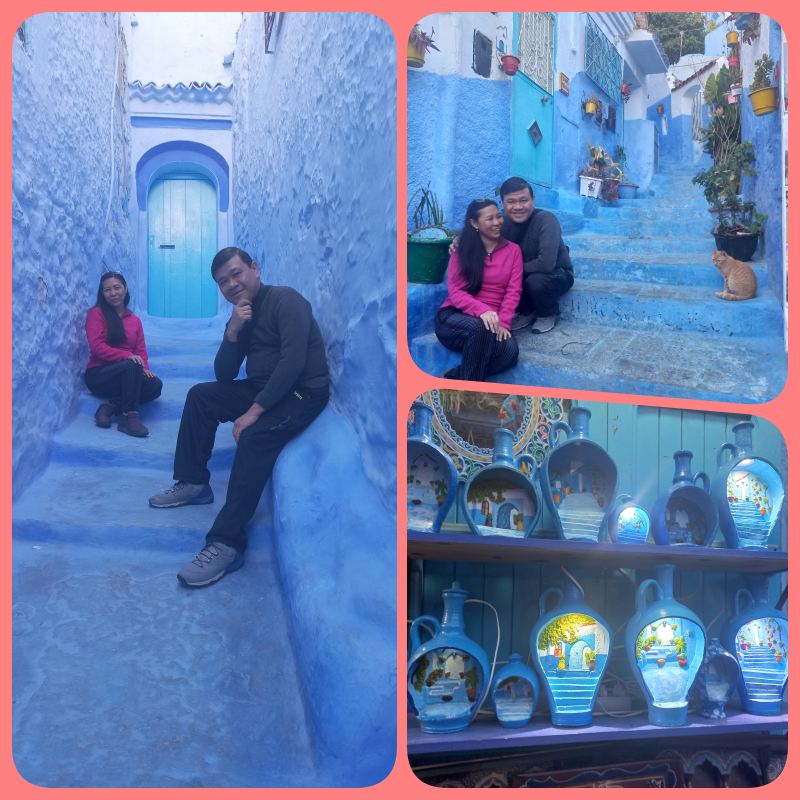 Yang paling menarik dan membuat mata ini berdecak kagum adalah karena warna cat dinding gedung2 di sini dan bahkan beberapa jalanannya, didominasi oleh cat warna biru. Inilah yang membuat Chefchaouen disebut dengan Blue City atau Kota Biru. Menariknya lagi, warna biru yang digunakan berbeda2, ada yang tua dan muda. Itupun ada variasinya lagi.