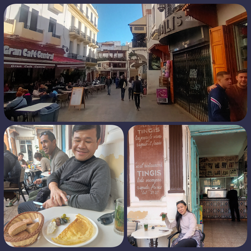 Sama seperti di kota2 Morocco lainnya, bersantai sambil menikmati kopi atau mint tea serta menikmati snack, juga ada di Tangier ini. Kami diajak bersantai oleh lokal guide kami karena dia ingin kami bisa merasakan atmosphere budaya lokal dari kota Tangier ini. Selesai bersantai dan ngopi, kami melanjutkan perjalanan kami kembali ke Casablanca.