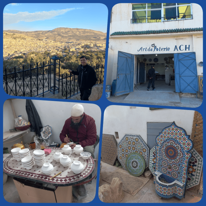 Dari Royal Palace of Fes, kami diajak keliling kota Fes sambil menuju salah satu bukit tertinggi untuk menyaksikan keindahan kota Fes. Setelah itu, sambil menunggu waktu jam buka Old Medina, kami diajak mengunjungi salah satu pabrik keramik di Fes yaitu Art de Poterie