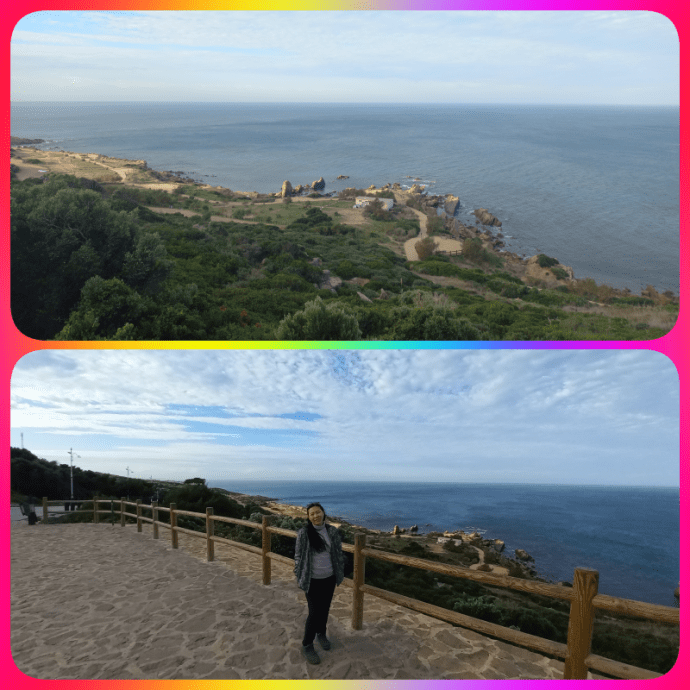Karena masih pagi dan Tangier Casbah (semacam Old Medina) masih tutup, kami diajak naik ke daerah perbukitan. Di kanan kiri banyak rumah mewah dengan taman yang terawat. Kami dibawa ke satu titik yang merupakan titik pertemuan antara samudra Atlantik dan laut Mediterania. Hal ini seperti saat kami mengunjungi Cape Town di South Africa part 3 yang merupakan titik pertemuan antara samudra Atlantik dan samudra Hindia