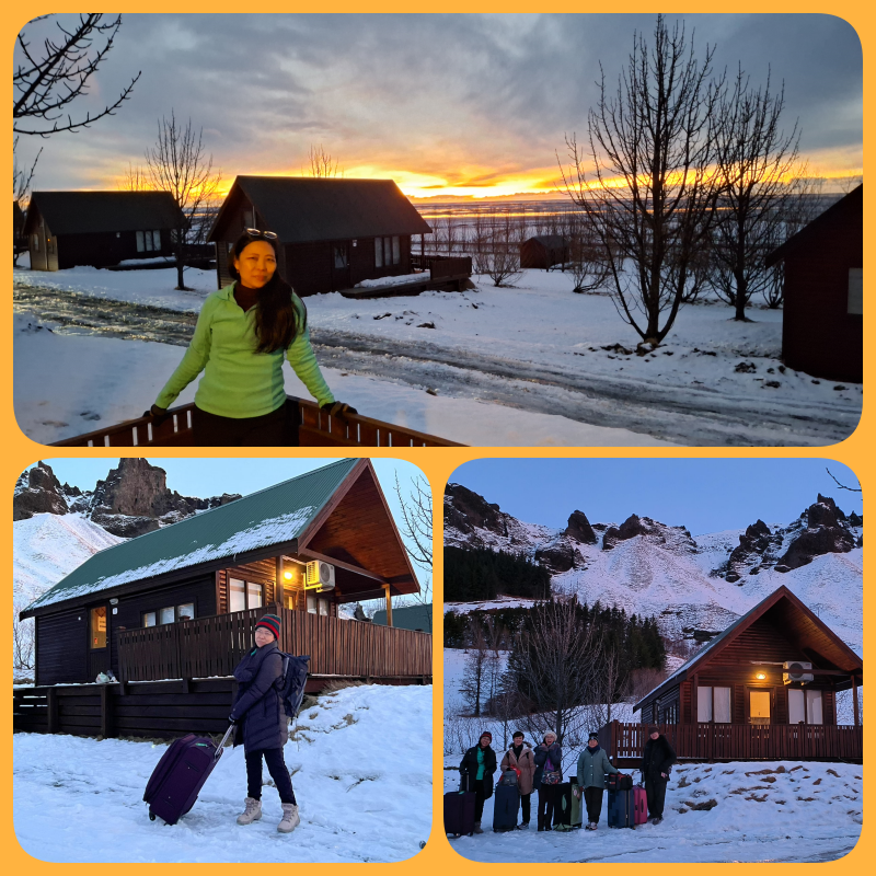 Pagi ini kami berangkat agak siang, sekitar jam 10 am. Sehingga akhirnya bisa menikmati sunrise di penginapan. Jadi ketika winter begini, sunrise itu sekitar jam 9.30 am. Karena setiap hari kita akan berkegiatan mulai sebelum jam 9, maka selalu pergi dalam keadaan gelap. Tidak buang waktu, langsung kami mengabadikan moment cantiknya sunrise menyembul di area cottage kami. Juga akhirnya bisa foto2 cottage kami yang cantik dalam keadaan terang.