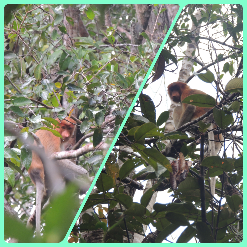 Kembali berjalan kaki menuju perahu di dermaga, kami sempat melihat bekantan dan monyet yang bergelantungan di pohon2 kanan kiri kami. Malah kami menemukan orangutan yang beraktivitas di depan salah satu rumah ranger, Sudah seperti hewan peliharaan saja ya