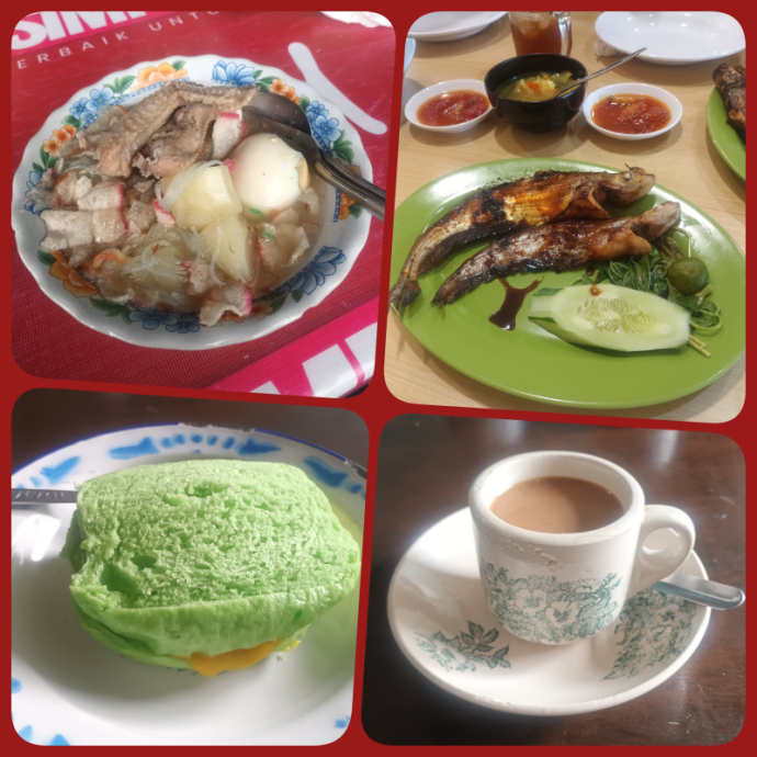 Sudah siang dan waktunya makan siang dengan makanan khas yang ada di Pangkalan Bun ini. Pertama kami makan coto manggala di Warung Gardu, di tepi sungai Arut yang melintasi Pangkalan Bun. Coto Manggala ini unik karena menggunakan singkong sebagai pengganti kentang, jadi beda dengan soto2 lainnya. Manggala artinya singkong buat orang lokal di sini. Selain singkong, di dalamnya ada soun, telur, dan ayam. Kalo komplit, per mangkok dihargai Rp. 37.000,-