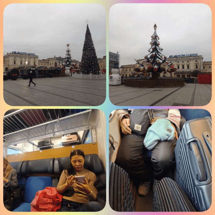 Pagi ini cuaca di Krakow masih mendung. Kami cari sarapan di mal, balik ke hotel untuk beres2 dan kemudian check-out. Kereta IC 114 yang membawa kami ke Prague, ternyata berbentuk kompartemen2. Mirip kereta Thello yang dulu membawa kami dari Paris ke Venice di Europe 2012 part 3 Dalam kompartemen kami, terdapat 3 seat saling berhadapan (total 6 seat). Ukuran rak di atas kami tidak memungkinkan untuk menaikkan koper bagasi kami yang besar. Hanya cukup untuk koper ukuran bagasi pesawat. Saat kami masuk kompartemen sudah ada 2 wanita dengan koper masing2. Untuk area kaki juga lumayan sempit, jadi ga bisa taro koper di bagian kaki, cuma bisa agak menyamping di area kaki kursi samping kami.